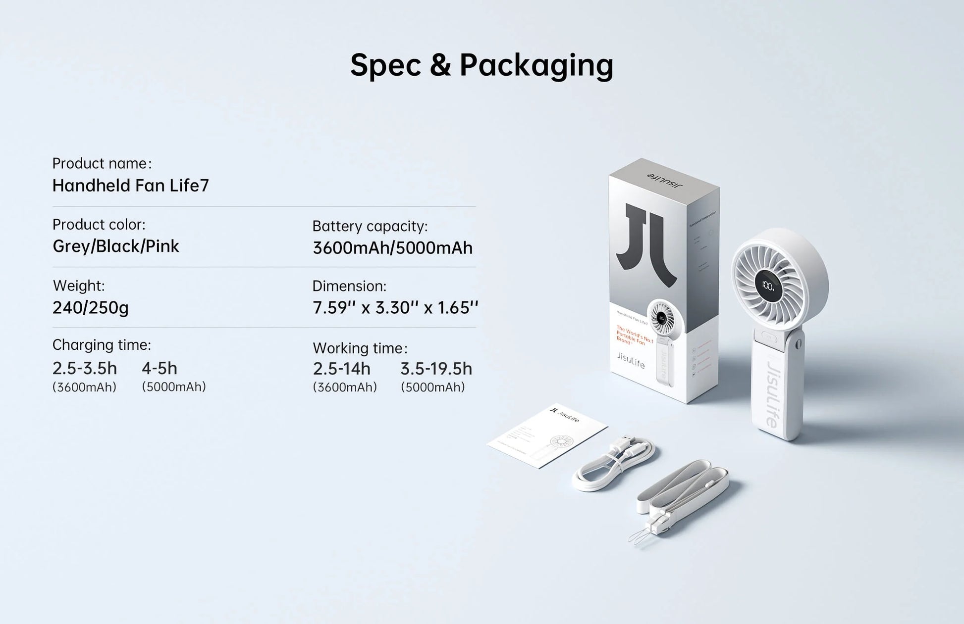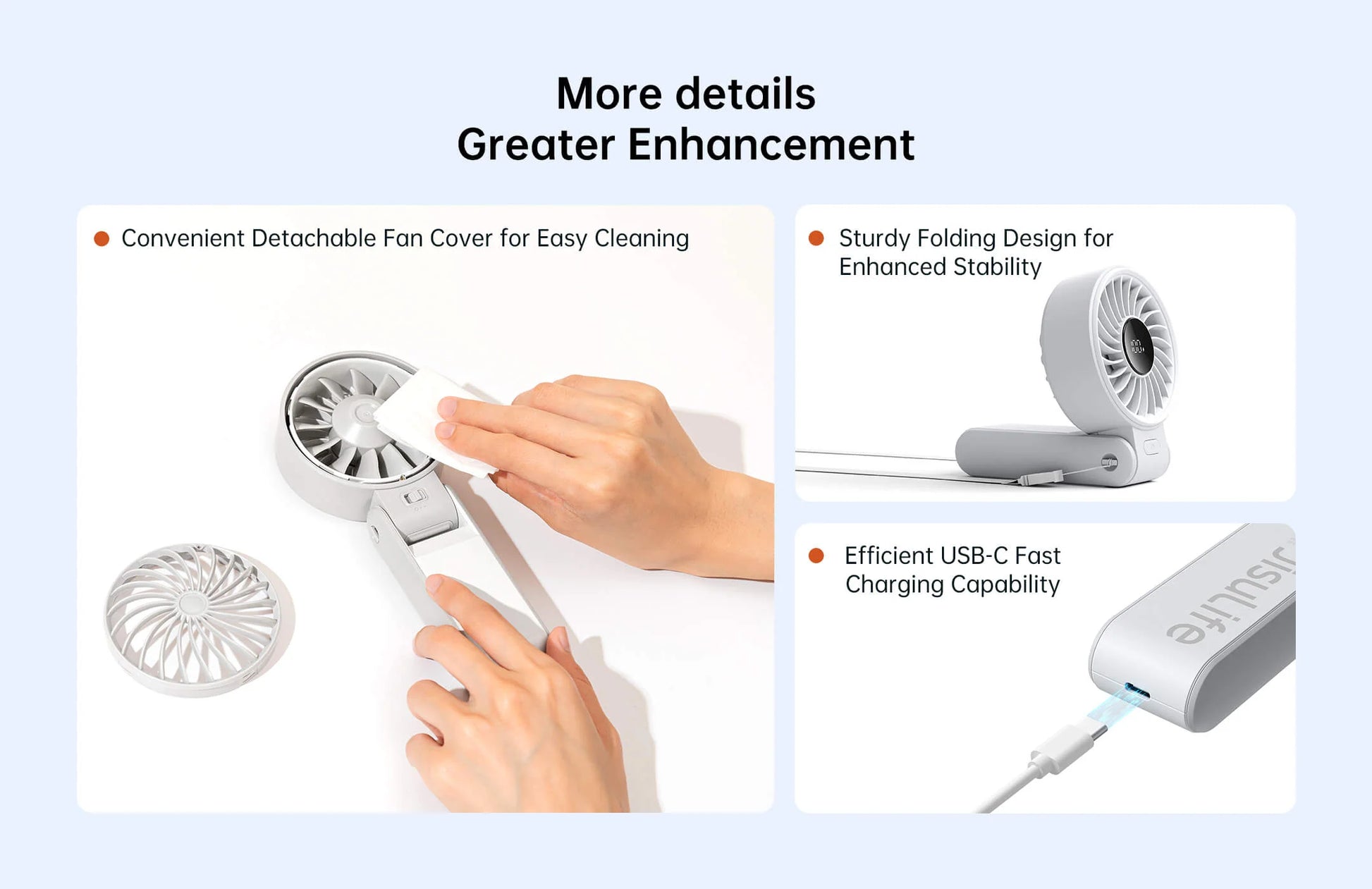 Multi-Angle, More Versatile: Putting on the desktop at 30°, enjoying the indoor cool breeze; Hanging on the neck at 90°, unleashing both hands for dynamic airflow; Holding on hand at 180°, use it however you want.