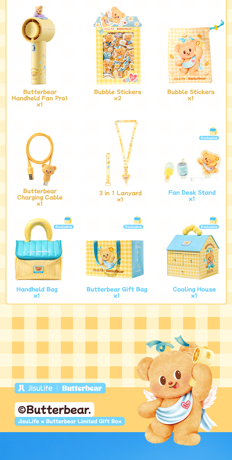 JISULIFE Handheld Fan Pro1 Butter bear Lunch Box